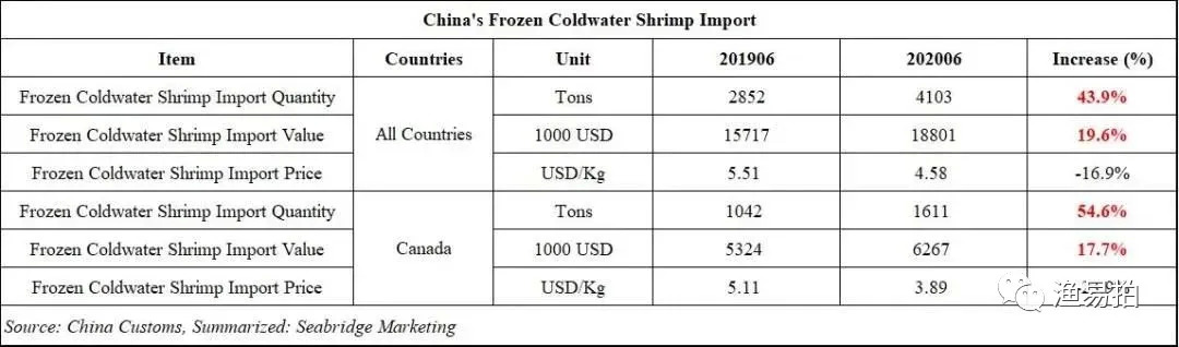 其中,2020年6月中国从加拿大进口的冷冻北极虾为1611吨,与去年同期的1042吨的进口量相比,逆势上涨55%,成为海鲜业的一大亮点。