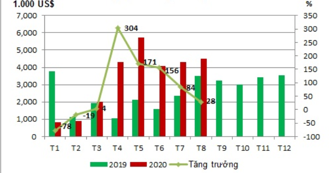 从越南到中国的鱿鱼和章鱼出口在今年的前两个月有所下降,随后的几个月又有所回升。自今年3月以来,中国的柯维氏病流行程度有所减轻,加上美国,欧盟和日本等国家逐渐放宽了隔离措施以预防流行病,因此中国对鱿鱼和章鱼的需求量正在减少。复苏。此外,越南对中国的竞争供应难以向中国市场供应商品,因此中国增加了从越南的进口以补偿。