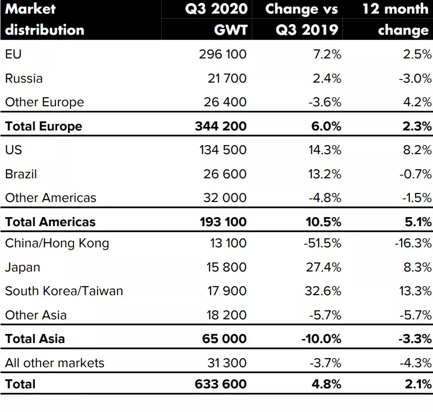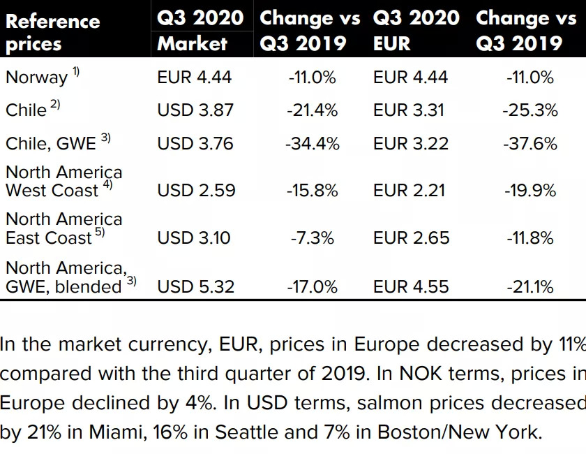 报告指出,第三季度三文鱼现货价格受新冠肺炎疫情及季节性高供给量的负面影响,公司各方面业务基本恢复正常;消费品板块业绩突出,销售额达到6.48亿欧元,销量超过6万吨,息税前利润同比增长36%,至1,940万欧元。