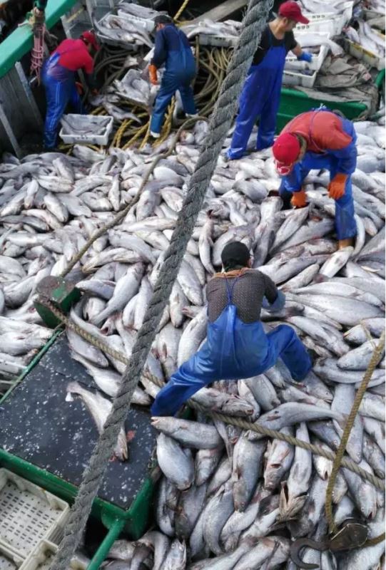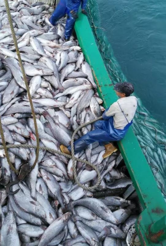 昨日上午八点多,温岭一双拖渔船在大陈洋海域一网拖来五六百担以上鮸鱼(就是我们通常说的米鱼),每担100市斤,价值超百万。由于鱼货数量太大,甲板上已经无法堆放,船长立即通知两艘渔运船过来接货。目前船上还在紧张分拣作业中,本次捕捞数量到底多少,暂时无法预估。