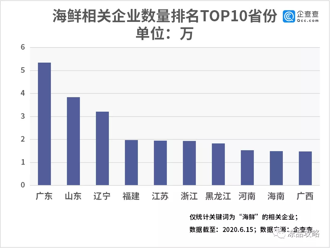 各地正在加紧速度对其海鲜市场已经经营者的全面排查。数据显示,我国共有海鲜相关企业39.30万家,其中企业状态为在业/存续的共有26.07万家。从地域分布来看,广东省的海鲜相关企业数量最多,达5.35万家,占所有企业总数的13.6%。山东省和辽宁省的相关企业数量分别排名第二和第三,约为3.84万家和3.22万家。