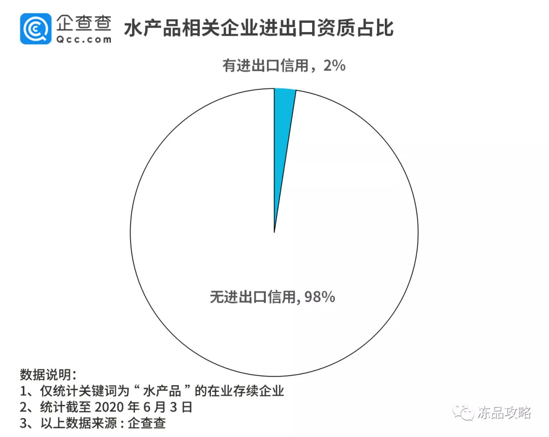 日本、美国、韩国、欧盟一直是中国水产品主要的出口市场,此次北京疫情中的三文鱼被证实来自于北欧的丹麦。另一方面,中国水产品出口的整体发展势头良好。企查查数据显示,有进出口信用的企业占比2%,广东、山东、福建三省为拥有进出口信用企业数量最多的三大省。