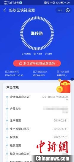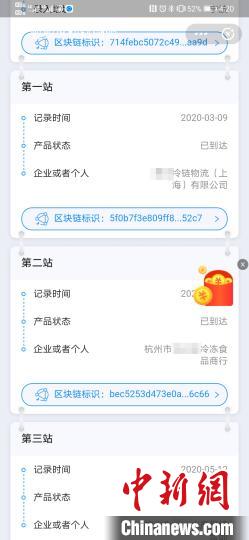 “冷链食品溯源码”实现了从供应链首站到消费环节产品最小包装的闭环追溯管理。中新社发 浙江省市场监管局供图