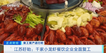 江苏盱眙,全国著名的小龙虾产地。目前,盱眙全市3000家大大小小的龙虾餐饮企业已经全面复工,大街小巷飘散着小龙虾的香气,十三香、蒜泥、椒盐、泡菜……