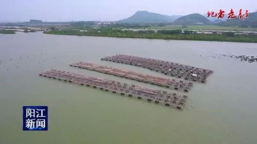 阳东区大沟镇的寿长村是远近闻名的蚝乡。阳东大沟镇寿长村依山傍海,当地的寿长河与南海相接,咸淡水交汇造就了极佳的海养环境。当地的养蚝历史悠久,先后经历了石头养蚝、吊装养蚝、浮排吊养和浮球吊养几个阶段。出于养殖成本和品质的考虑,当地蚝农大多都是自育蚝苗,养殖户们通过水泥制作的蚝柱置入水中,河水中的小蚝苗就会附在上面生长,等小蚝苗长到一定程度,养殖户就将蚝柱上的蚝苗分开,重新组合后下苗。据了解,目前,寿长村的养蚝户主要集中在下村自然村,大约有60户,养蚝面积达5000多亩。