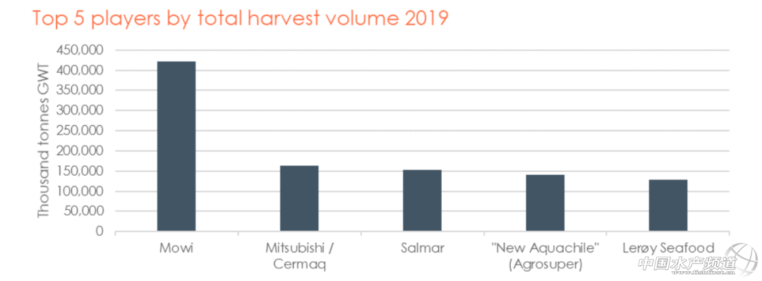 全球大西洋鲑生产商前五名为美威、赛马克、萨尔玛、智利爱阁(智利AQ)以及挪威莱瑞。