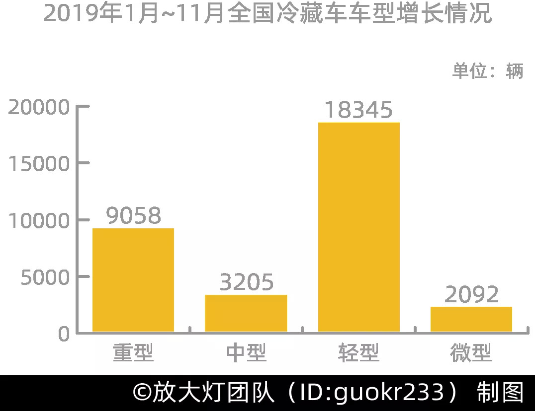 2019年1~11月全国冷藏车车型增长数量情况 | 资料来源:中物联冷链委[29]