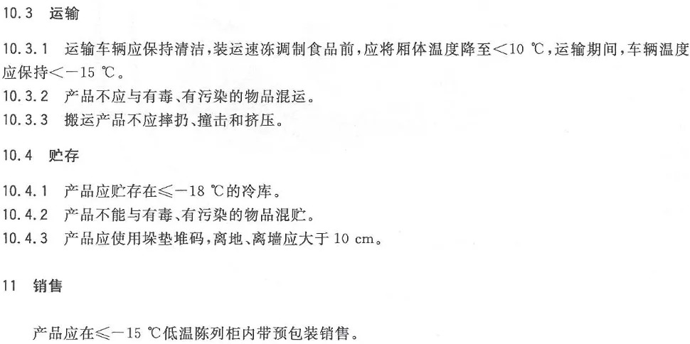 《SB/T10379-2012 速冻调制食品》中对于速冻食品的运输、贮存和销售的要求[7]
