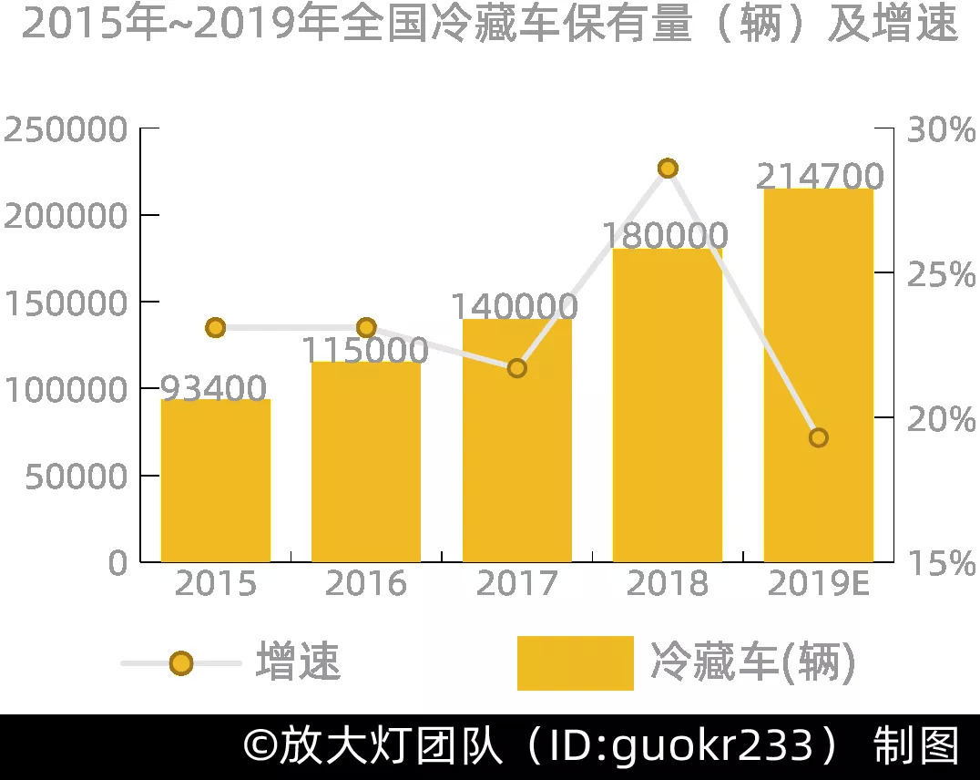 2015~2019年全国冷藏车保有量及增速 | 资料来源:中物联冷链委[29]