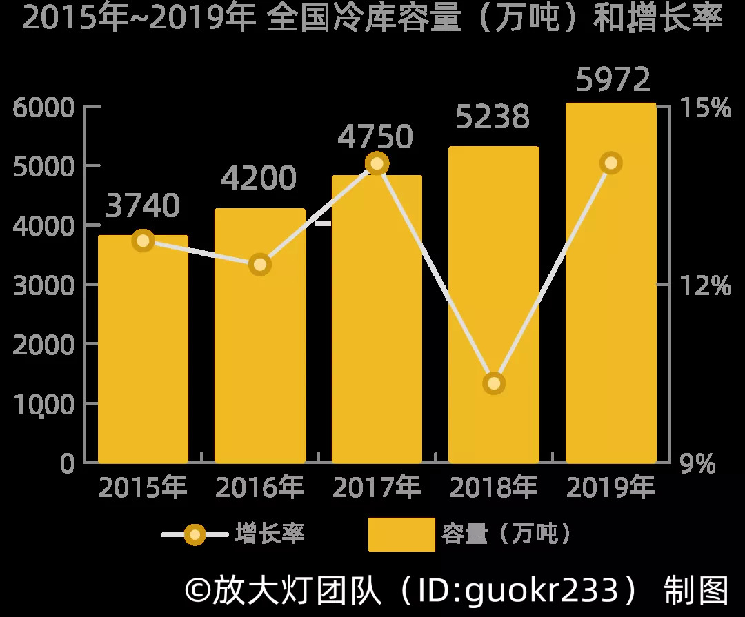 全国冷库容量及增长速度 | 资料来源:中物联冷链委研究院 [13]