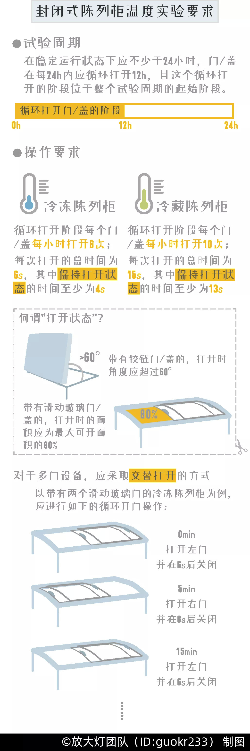 相比家用冰箱,陈列柜的使用场景更复杂。以封闭式冷冻陈列柜为例,在进行温度试验时,有这些要求[31]: