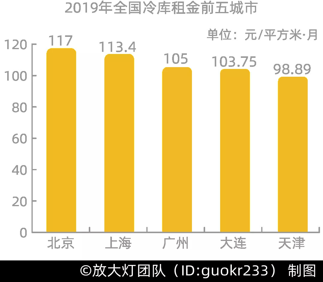 不同于作为农产品出口大省的山东,随着消费需求增长,北京、上海、广州等城市的冷库需求量也居高不下,导致冷库租金很高[17]。