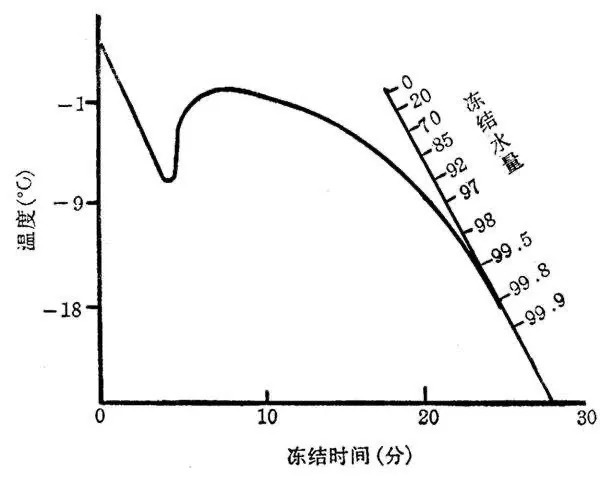 不同食物冰点不同,只有温度足够低时,食物中的大部分水才能冻结。当牛肉薄片的温度为-4℃时,只有70%的水分被冻结;