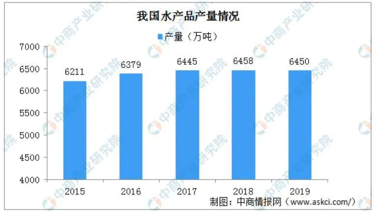 一直以来,我国是世界上主要的水产品生产国,水产品总产量自1989年起连续30年居世界第一,占世界总产量的40%以上。近几年我国水产品总量整体保持增长趋势,2018年我国水产品总产量为6458万吨,与2017年相比变化不大。2020年初,农业农村部于渔业改革创新高质量发展推进会上透露,2019年全国水产品产量保持在6450万吨左右,与2018年基本持平。