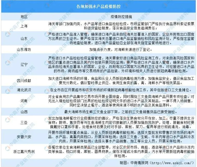 北京新发地农产品批发市场出现聚集性疫情后,国务院联防联控机制召开会议强调,对全国农贸市场等集中开展消杀。目前,各地农贸市场加强疫情防控,严查海鲜产品进货来源。山东海关严格进口海产品准入管理,上海海关等部门加强肉类、水产品等进口食品检验检疫,三亚发出加强海鲜餐饮行业疫情防控的倡议,严格落实生熟食材分开存放、加工,尽量不提供生冷食物。