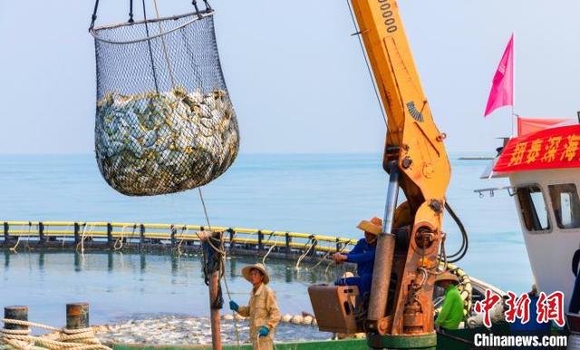 海南翔泰渔业股份有限公司董事长刘荣杰介绍,该企业在海南临高后水湾和昌江棋子湾海域投放数百口深海养殖网箱,每口网箱年产量在75吨至200吨之间。今年3月共投放近5000万尾金鲳鱼苗,预计收获金鲳鱼1.5万吨。