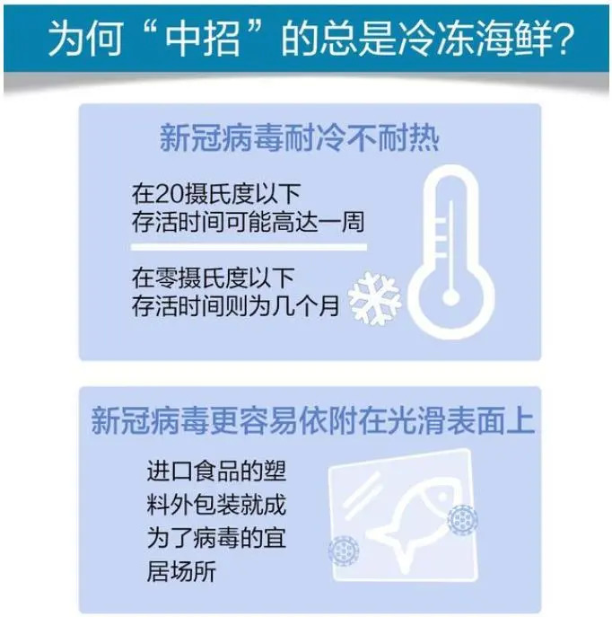 近几个月来,全国多地在进口的冷冻海鲜食品集装箱和外包装样品,检测出新冠病毒,公众对此颇为关注。为什么 " 中招 " 的总是冷冻海鲜?冷冻海鲜还能吃吗?
