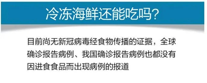 冷冻海鲜 " 中招 ",人们还能放心吃吗?金冬雁表示,很多人将 " 食品或食品外包装检测出新冠病毒 " 与 " 吃了会感染新冠病毒 " 画上等号,这是过于恐慌。" 目前,全球被证实因为冷链受到感染例数不多,也没有任何证据证明病毒会在海鲜里面增殖。而且还没有新冠病毒经过食物传播的证据。也都没有因进食食品而出现病例的报道。"