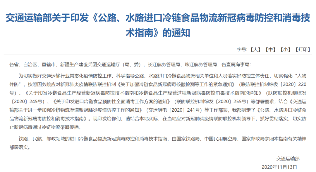 该通知还要求,加强对运输冷链食品车辆和人员的监管,对不能提供消杀和食品相关证明材料的,不得承接货物运输。总仓管理者对新进员工和返工人员14日内行程与健康状况进行登记,每班上岗员工必须落实登记、测温、消毒、查验健康码等防控措施,严禁“带疫”上岗。
