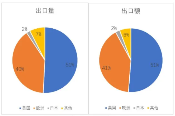 2.欧美占小龙虾出口90%以上的份额。2018年我国小龙虾出口到美国5491.84吨,出口额为9625万美元,分别占我国小龙虾出口总量和出口总额的50.8%和51.2%;同期出口到丹麦、瑞典等欧洲国家4290.98吨,出口额为7663万美元。