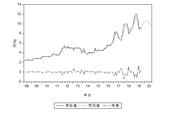 图6. 我国牡蛎批发价格预测值与原始值对比图
