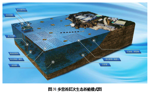 技术要点:根据不同营养级养殖生物的营养需求以及海区的养殖容量,构建2层、3层、3+1层等多种形式的生态养殖模式,并进行各种养殖品种的合理密植、优化搭配,以实现自然环境养分、能量、空间利用率的最大化。