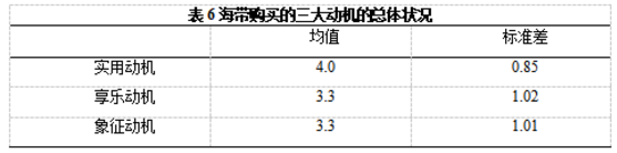 第五,消费者购买海带主要是出于实用动机,享乐动机和象征动机较弱。消费者虽然认为目前市场海带种类基本能够满足需要,但是消费者仍然期待海带的新产品或新吃法推出。