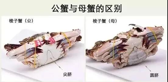 除了蟹腹的纹路,肚脐也是非常重要的判断依据。肚脐圆圆的是母蟹,肚脐尖尖的则是公蟹。