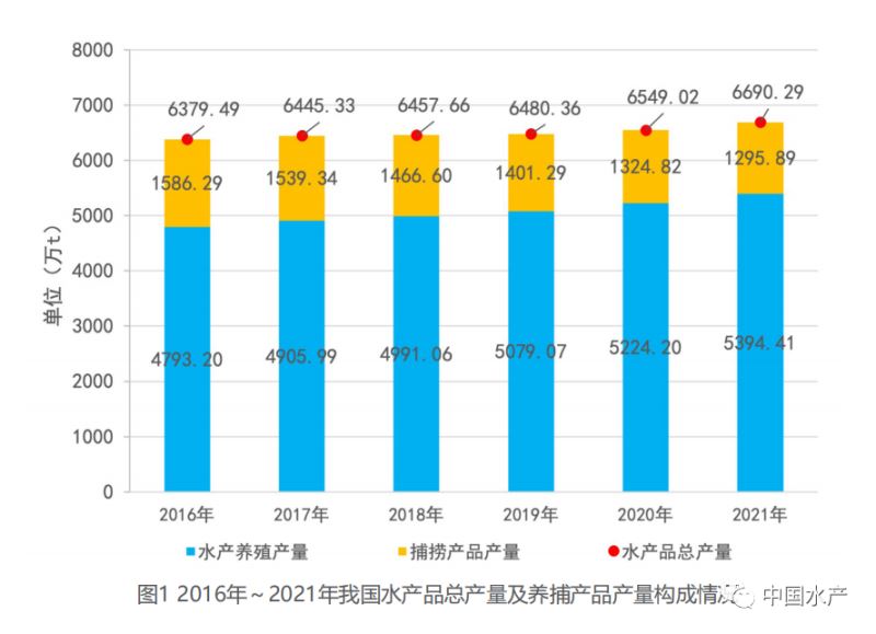 《中国渔业统计年鉴》公布的数据是我国官方统计数据,其主要统计指标按照国家统计局批准执行的渔业统计调查制度进行统计,年鉴由农业农村部渔业渔政管理局和全国水产技术推广总站、中国水产学会共同编制。通过对“十三五”以来《中国渔业统计年鉴》有关数据的分析,可以得出以下结论。