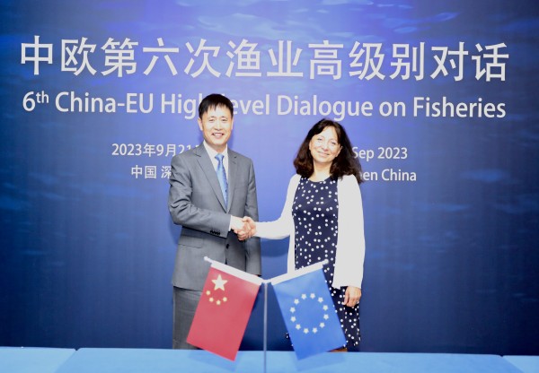 9月21日,中欧第六次渔业高级别对话在深圳市举行。农业农村部渔业渔政管理局局长刘新中和欧盟委员会海洋与渔业总司总司长维特切娃共同主持了会议。会议通报了中欧渔业最新政策和打击IUU进展情况,讨论了《国家管辖范围外海域生物多样性养护和可持续利用协定》、《渔业劳工公约》、《关于预防、制止和消除非法、不报告和不管制捕捞的港口国措施协定》和《渔业补贴协定》等国际渔业治理问题,并就印度洋金枪鱼委员会热带金枪鱼的养护和管理措施、北太平洋渔业委员会渔船监管以及欧盟加入《中白令海狭鳕资源养护管理公约》等区域性渔业事宜交换了意见。双方一致认为,中欧渔业高级别对话机制有助于双方协调立场、增进理解和互信,已成为促进双方渔业合作的重要平台。双方同意在双边及多边领域进一步加强交流与合作,共同应对全球渔业治理挑战。