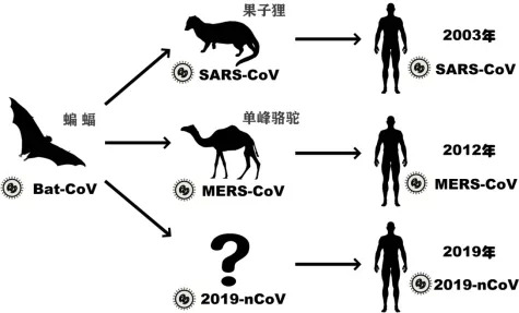 图2 SARS-CoV、MERS-CoV和2019-nCoV传播途径